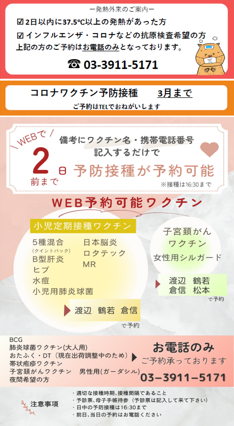 ご予約を希望の方は再診予約へお進みください。新患の方はお電話で予約をお取りできます。